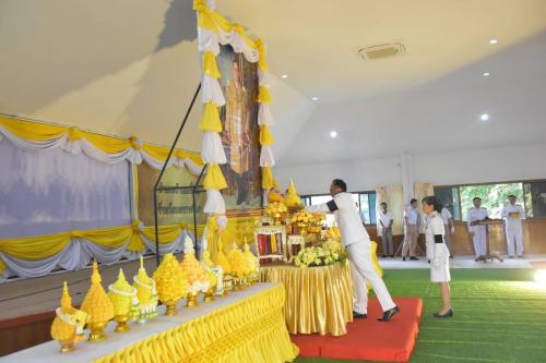 เวลา 08.00 น. พิธีเจริญพระพุทธมนต์และพิธีทำบุญตักบาตรข้าวสารอาหารแห้งแด่พระสงฆ์ เพื่อถวายเป็นพระราชกุศล จำนวน 10 รูป ตามโครงการวัด ประชารัฐ สร้างสุข หมู่บ้านรักษาศีล 5 ขยายผลสู่หมู่บ้านศีลธรรม