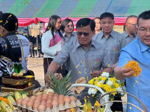นายกองตรี นพดล แก้วประกิจ นายอำเภอบ้านเหลื่อม เป็นประธานในพิธีงานบุญกุ้มข้าวใหญ่ และพิธีบวงสรวงท้าวสุรนารี อำเภอบ้านเหลื่อม ประจำปี 2569 พร้อมด้วย สจ.โกวิทย์ เลาวัณย์ศิริ หัวหน้าส่วนราชการ นายกองค์กรปกครองส่วนท้องถิ่น ข้าราชการ กำนัน ผู้ใหญ่บ้าน และประชาชน เข้าร่วมพิธีโดยพร้อมเพรียงกัน